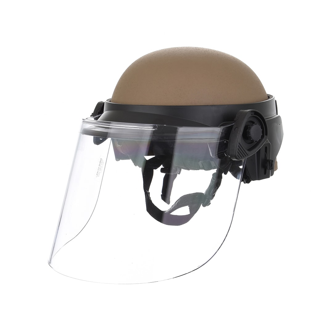 Paulson™ DK6-X.250AF, universal field-mount riot face shield designed to fit most PASGT & ACH/MICH style combat helmets (not including helmets with rails). Integral rubber seal provides protection from liquids. Premium shield coatings feature an anti-abrasion hard coating on the exterior & permanent anti-fog on the interior. Optically correct lens. V-50 rating for fragmentation.