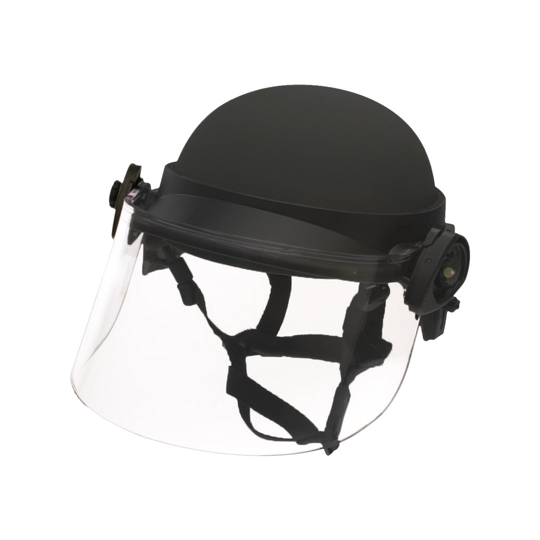 Paulson™ DK6-X.250AFS, universal field-mount riot face shield designed to fit most PASGT & ACH/MICH style combat helmets (not including helmets with rails). Integral rubber seal provides protection from liquids. Premium shield coatings feature an anti-abrasion hard coating on the exterior & permanent anti-fog on the interior. Optically correct lens. V-50 rating for fragmentation. Shield length of 6” allows for gas mask clearance.