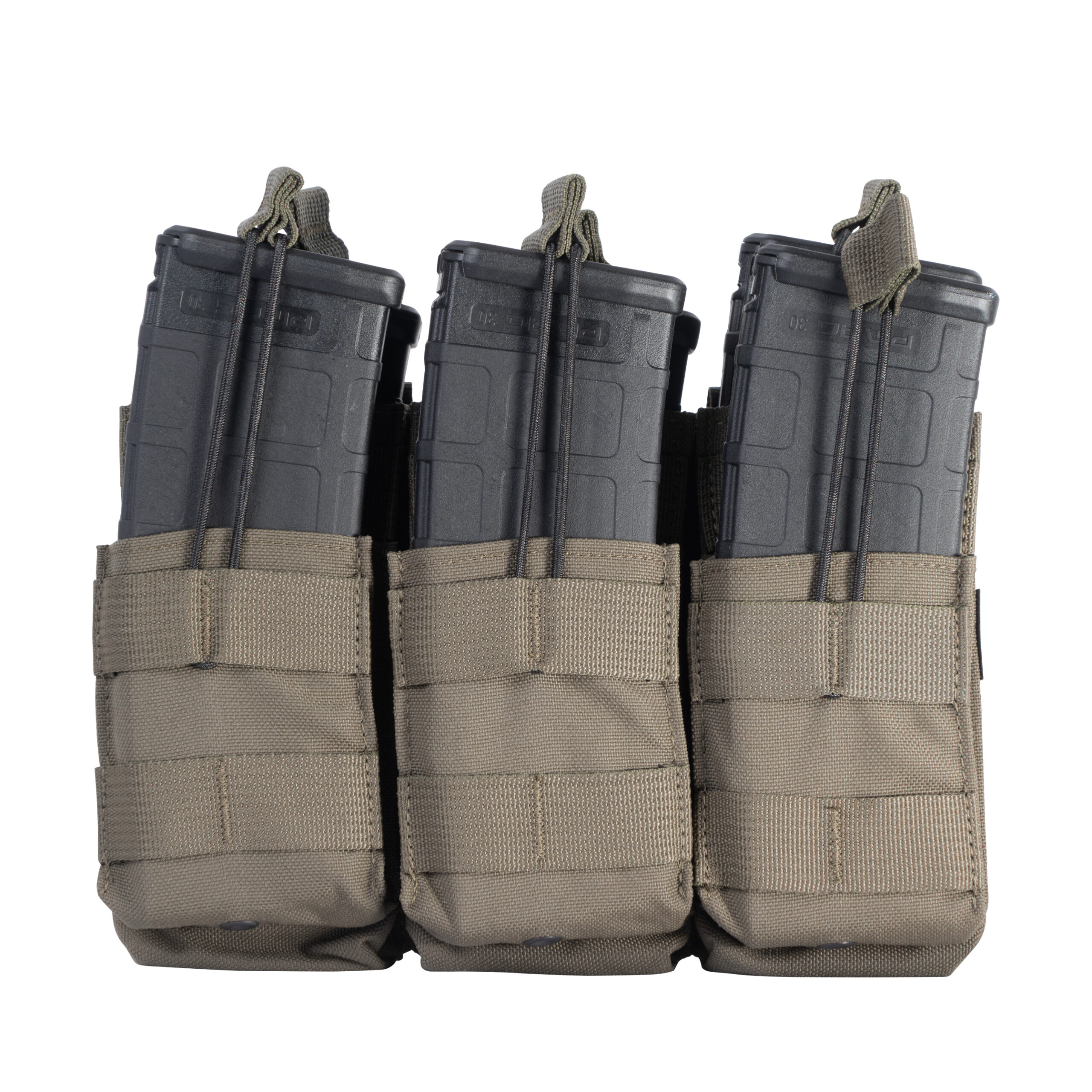 Scorpion Triple Stacker M4 Mag Pouch is constructed of 1000D Nylon Cordura and can be attached to any of our MOLLE compatible carriers securing three rows of stacked M4 mags close and easily accessible.