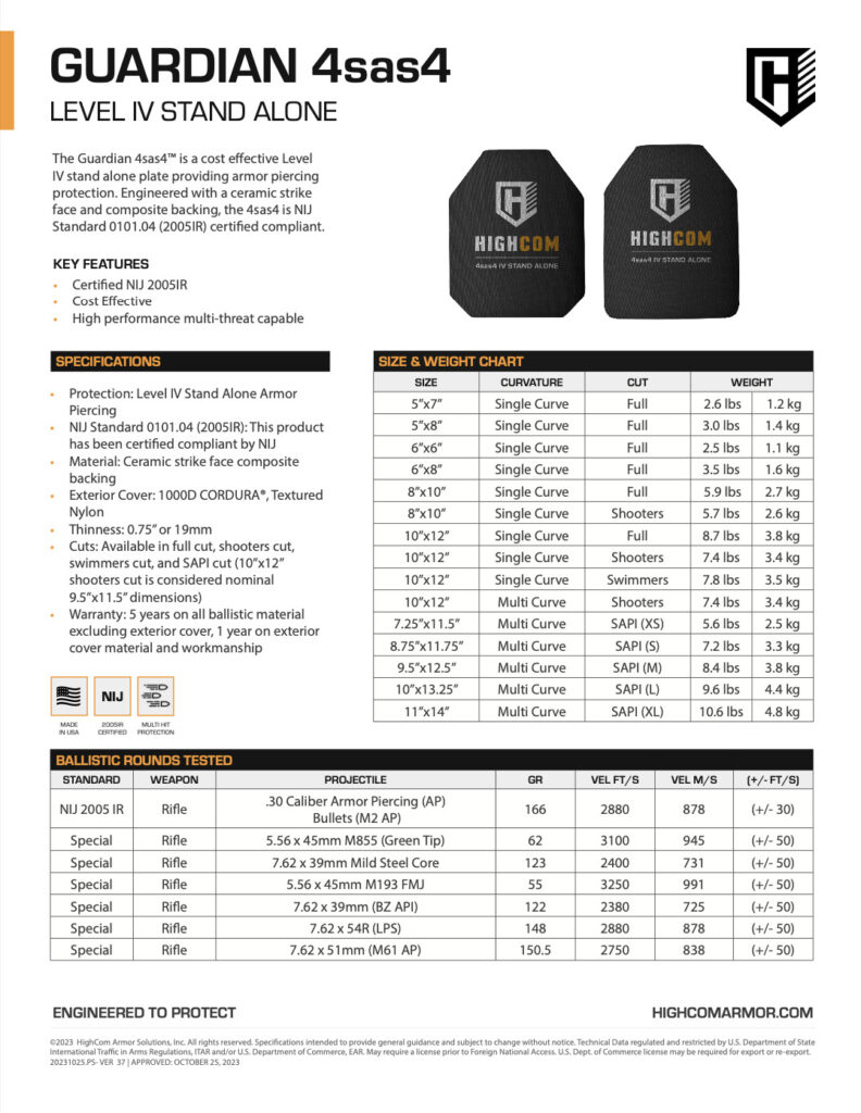 HighCom Armor attempts to be as accurate as possible. However, HighCom Armor does not warrant that product descriptions or other content of this site is accurate, complete, reliable, current or error-free. If a product offered by HighCom Armor itself is not as described, your sole remedy is to return it in unused condition according to our Return Policy located on this page.