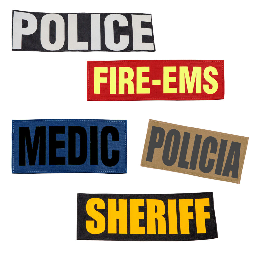 I.D. Placards are constructed from the same material as the plate carrier and match the carrier color. Choose text color, letters are available in black, white, grey, gold, or fluorescent lime yellow. Choose POLICE, SHERIFF, or CUSTOM text.